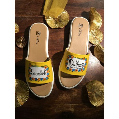Zubiya is the go-to brand for the folks who have a colourful personal style yet hate compromising on comfort and quality! Our collection is trendy and cool - carefully hand-crafted and painted by the artists. The slides especially are fun to wear on your MEHENDI/HALDI CEREMONY- they have quirky quotes on them, stay light on your feet and keep them looking stylish and pretty on your special day!