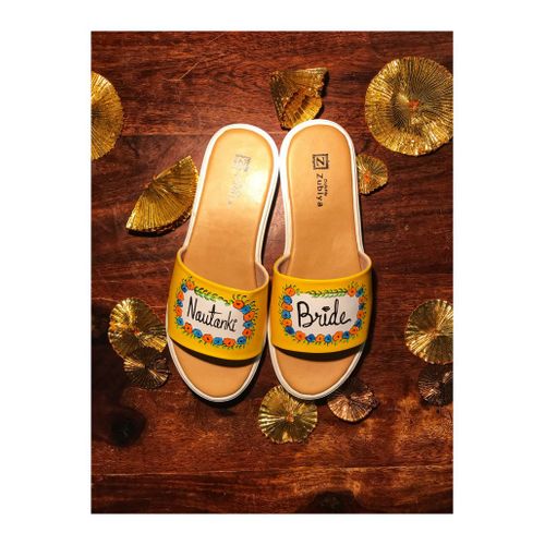 Zubiya is the go-to brand for the folks who have a colourful personal style yet hate compromising on comfort and quality! Our collection is trendy and cool - carefullyhand-crafted and paintedby the artists in the house. The slides especially are fun to wear on your MEHENDI/HALDI CEREMONY- they have quirky quotes on them, stay light on your feet and keep them looking stylish and pretty on your special day!