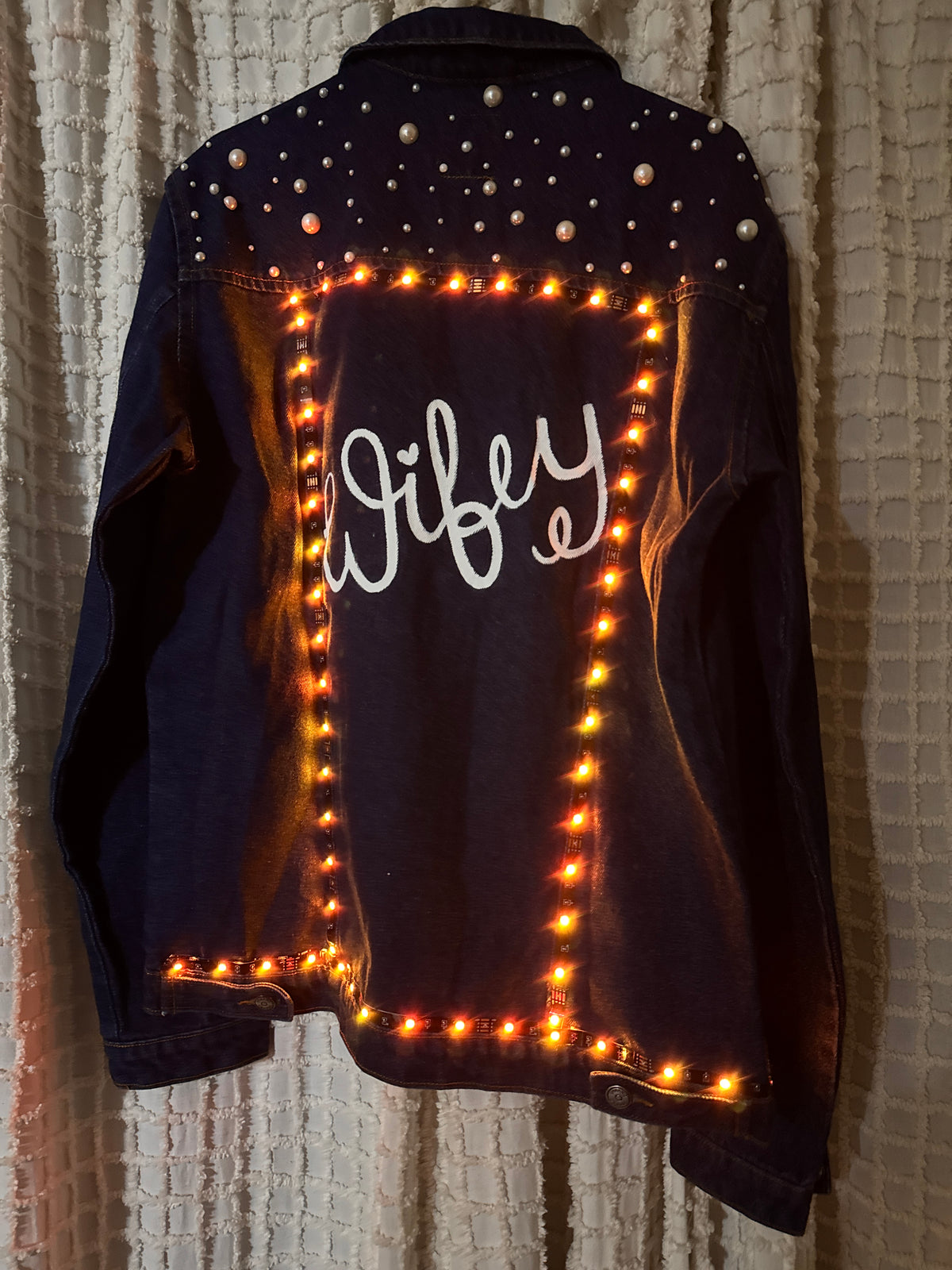Wifey Pearl Denim jacket with LED lights